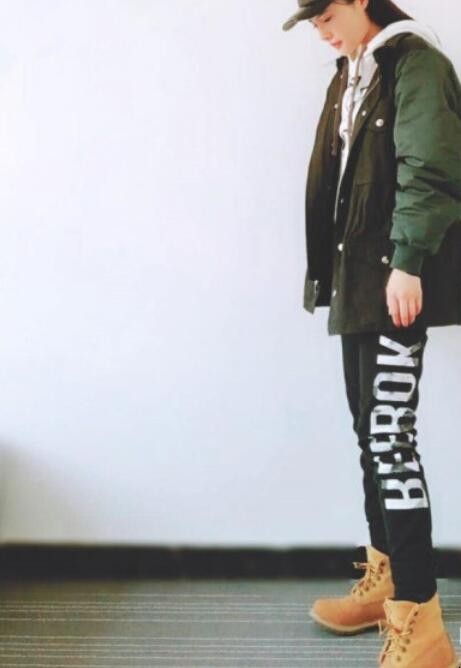4、大黄靴+小黑裤+浅灰色衬衫+迷彩休閑外套:小黑裤和大黄靴可以说是很搭的组合,很显腿细,也方便搭配大黄靴,上衣穿一件浅灰色衬衫和迷彩休閑外套,整体搭配出来就是时尚、休閑风。